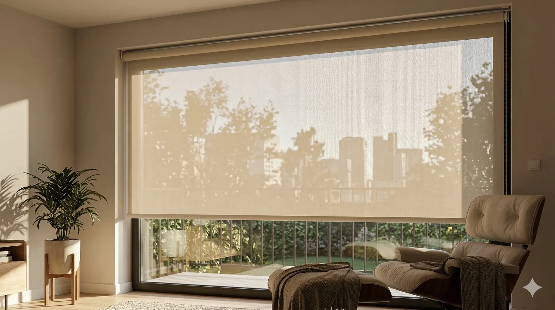 Los tejidos screen son una de las opciones más populares. Están diseñados para filtrar la luz solar sin bloquear completamente la vista al exterior. Permiten que entre luz natural mientras reducen el deslumbramiento y protegen del calor.